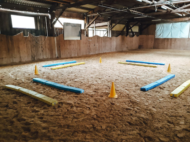 Ein großer naturbelassener Reitplatz mit Roundpen bietet gute Übungsmöglichkeiten unter freiem Himmel, bei schlechtem Wetter und in den winterlichen Abendstunden kann mit den Pferden in der Bewegungshalle gearbeitet werden.